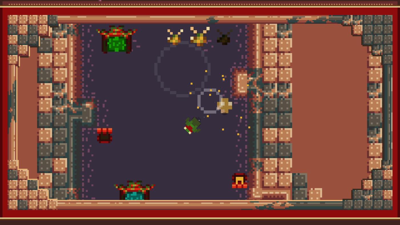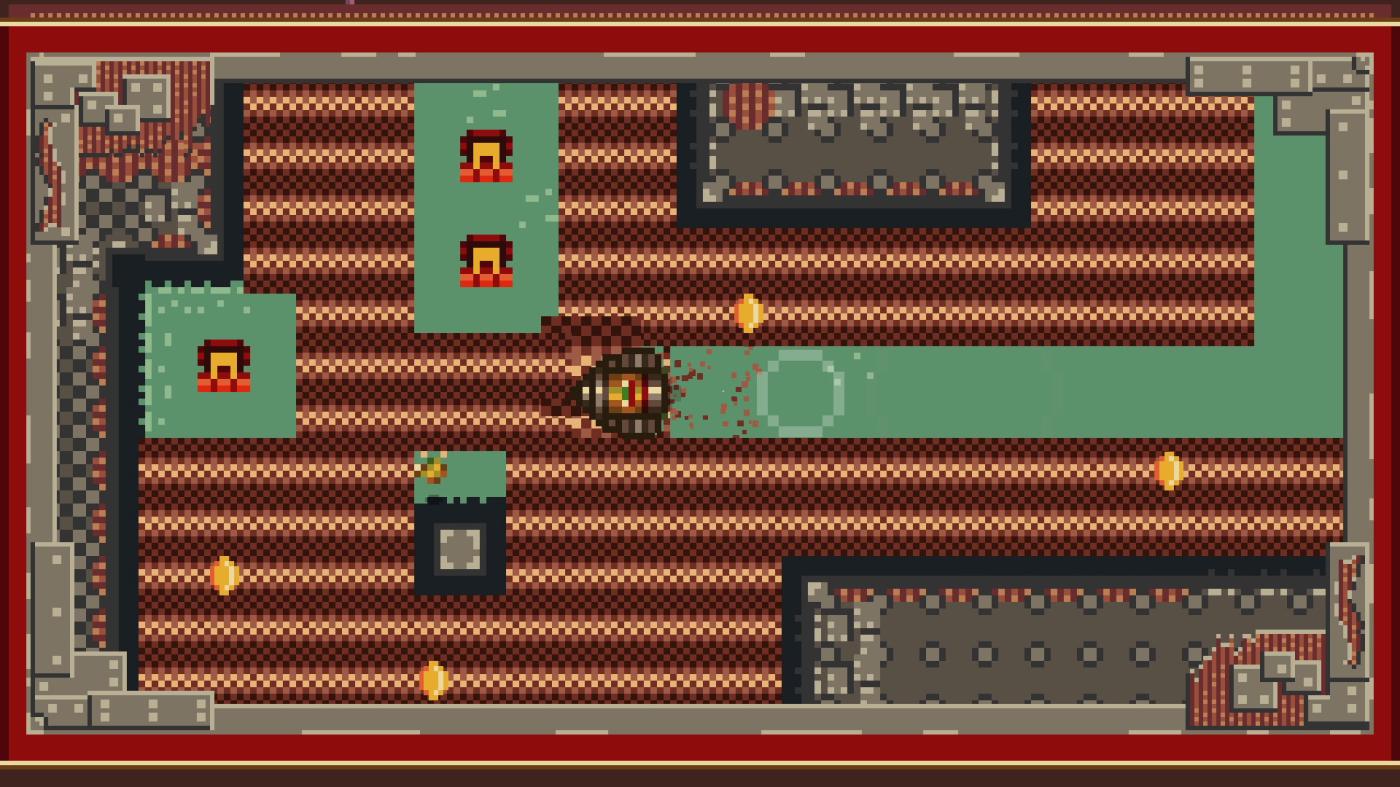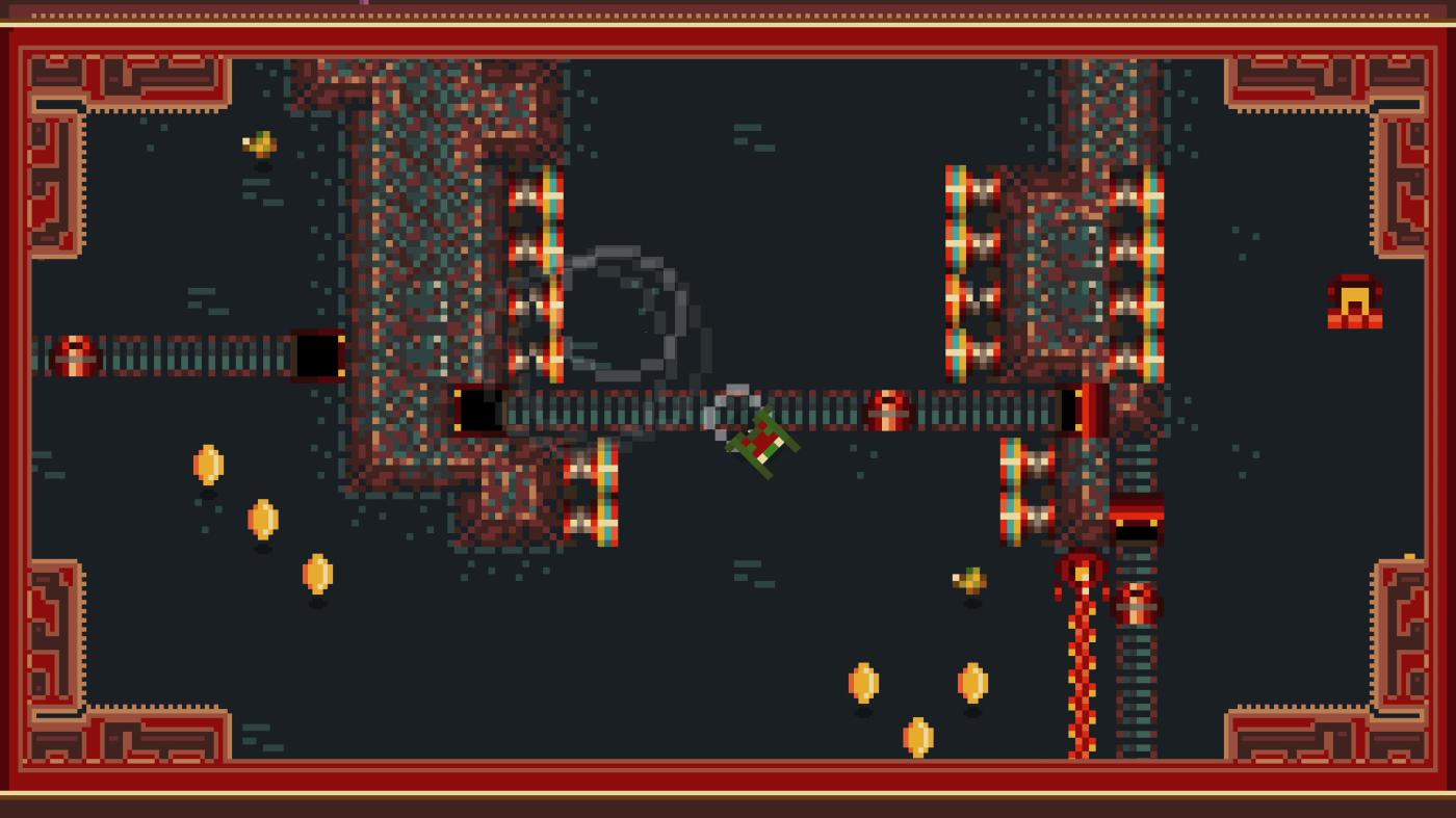 Direction Quad is a 2D action-adventure presented in top-down pixel art style. Take the role of young Quad as he hops through the swamp in any diagonal direction, collecting coins and bugs along the way. The objective is to get Quad from his starting lily pad to the finish line of each stage without colliding with the terrain or any treacherous traps.
