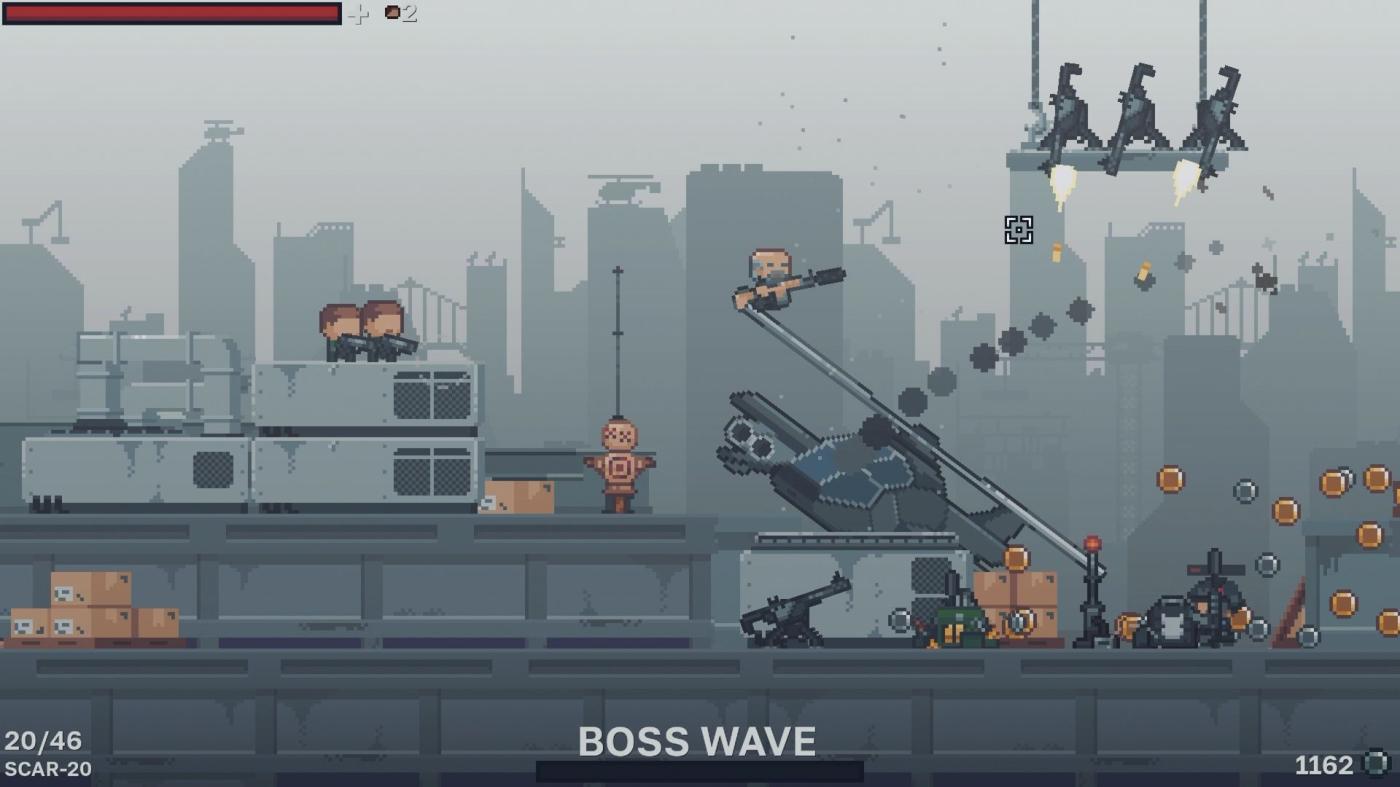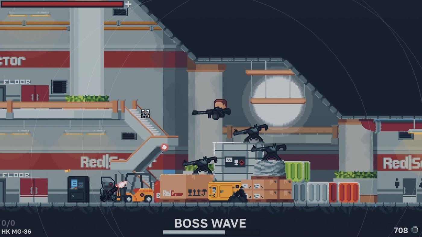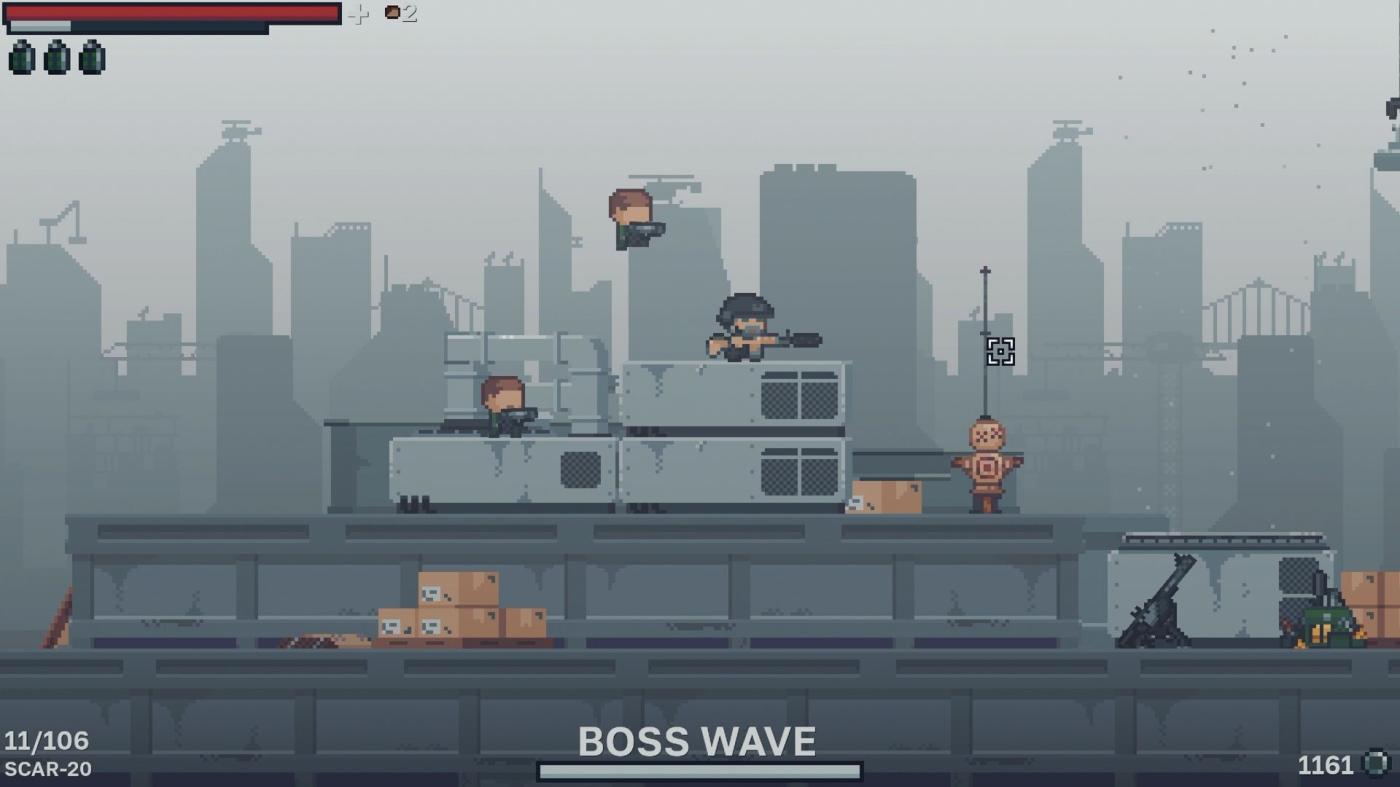 REDEX is a pixel-art survival shooter where you battle waves of enemies in fast-paced side-scrolling combat. Collect coins to buy ammo, grenades, armor, and more from vending machines, then trade rare gold for permanent upgrades and new characters.